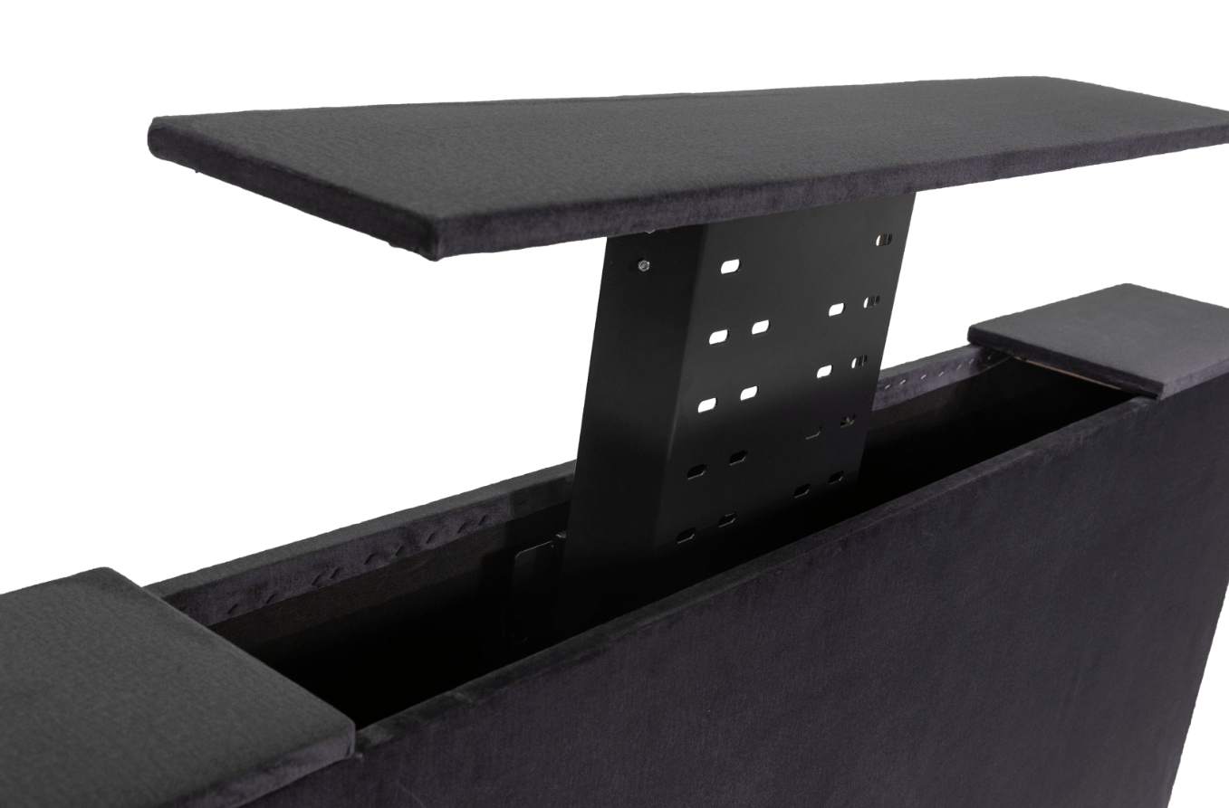 Dit 86 cm hoge TV-meubel is met een luxe meubelstof door onze eigen fabriek gestoffeerd. Je hebt de keuze uit 11 verschillende kleuren opties en 3 verschillende breedtematen, om het voetbord/tv-meubel perfect te laten matchen met jouw bed. Televisies met een schermgrootte tot en met 43 Inch kunnen gemakkelijk worden gemonteerd. De elektrische tv-lift kun je bedienen met de meegeleverde draadloze afstandsbediening en kan worden versteld tot op iedere gewenste hoogte. Dit TV-meubel zorgt voor een extra luxe uitstraling in jouw slaapkamer en draagt bij aan extra gemak en comfort.